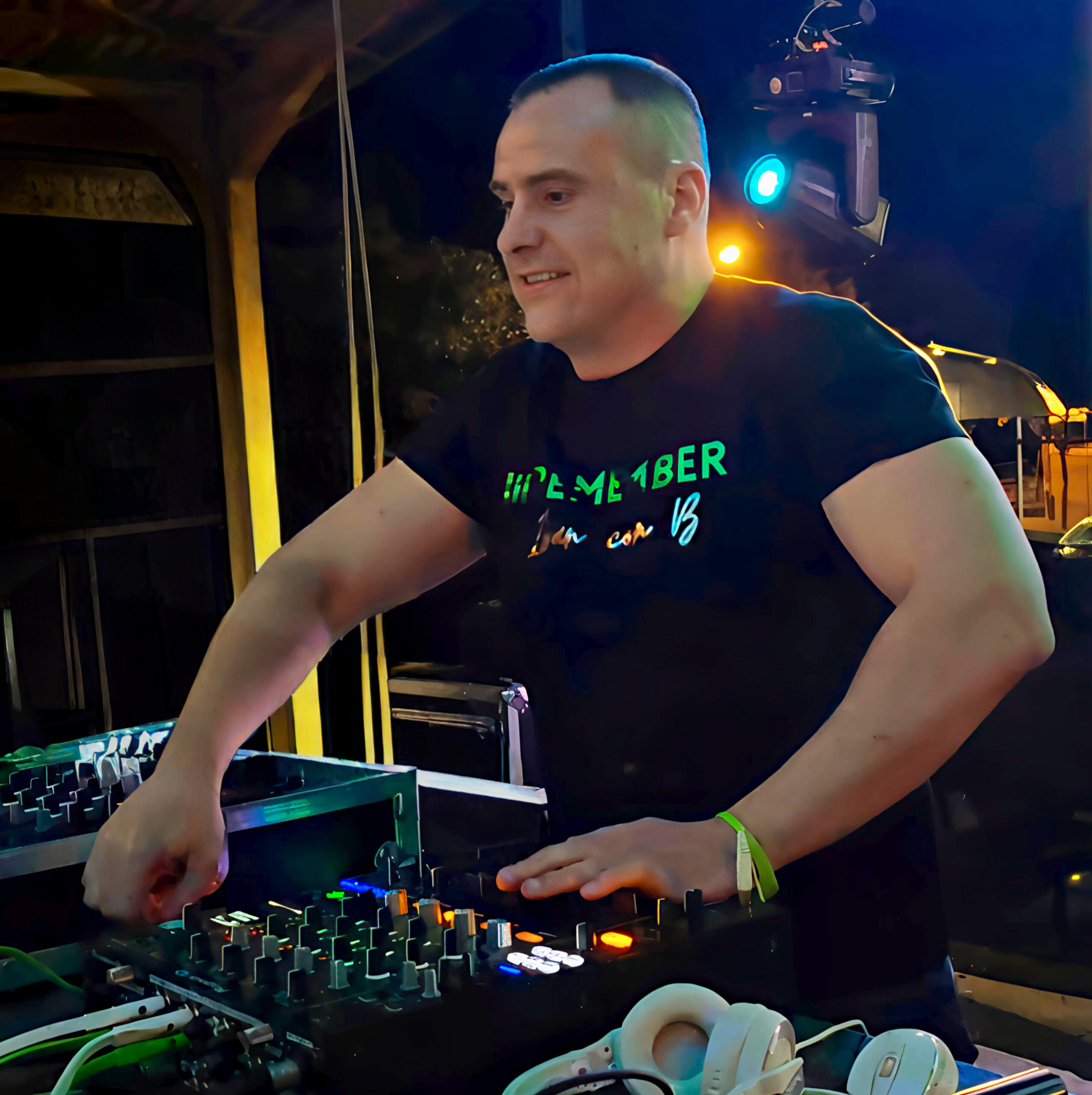En mis primeros años, mi sonido estuvo marcado por el Dance 90s – 00s, Makina, Hardcore, US Hard House. Empecé a grabar mis primeros cassettes y fue una etapa de autoformación intensa, estudiaba mezclas sin parar y me pasaba horas afinando detalles que otros ni siquiera miraban. Muy pronto entendí que pinchar no era solo una cuestión técnica, sino algo mucho más profundo, era una conexión entre mi visión artística y las emociones del público. Siempre he sido meticuloso y cuidadoso con cada detalle y escojo cada canción con una intención clara. Me obsesiona entender por qué una melodía, un ritmo o una mezcla hacen que alguien baile, se suelte y llegue a sentir algo. Desde ahí, construyo sesiones que no solo hacen bailar, sino que cuentan una historia. Porque no basta con sonar bien… hay que decir algo.