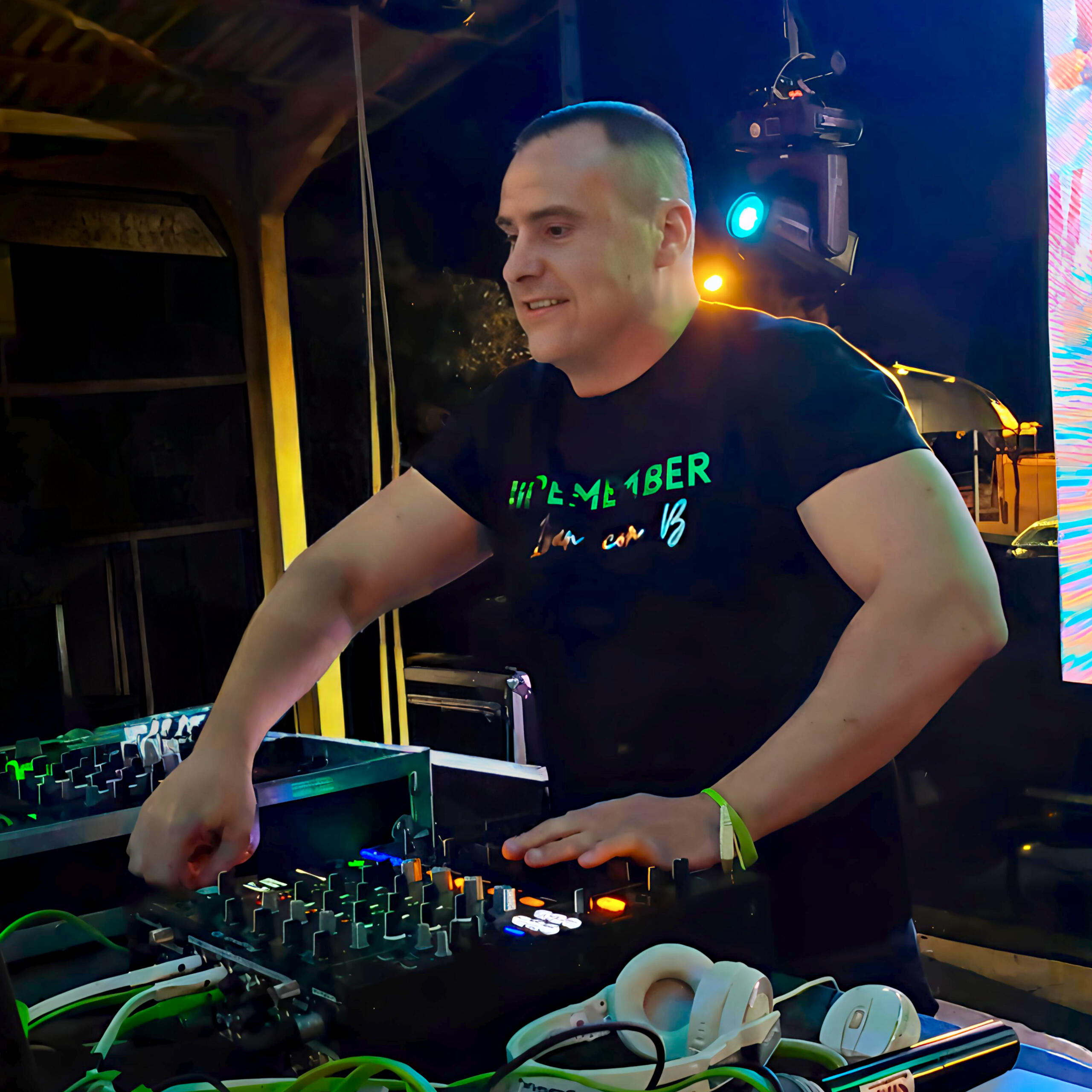 Y a partir del año 2000 nacen muchísimos subgéneros. La música se multiplica, surgen bombos distintos, melodías nuevas, fusiones de estilos… podríamos entrar en un bucle infinito tratando de explicarlo todo. Pero yo no voy por ahí. Me quedo con lo que sé mover en la pista, con lo que realmente funciona y conecta: Mantener la esencia del REMEMBER de los 90 y del Dance del año 2000 fusionado con el Hard Dance, Hard Techno, el Tech Trance actual. Ese es mi punto de encuentro entre aprendizaje, experiencia y público, lo que me permite construir sesiones que no solo suenan, sino que cuentan algo y hacen sentir.